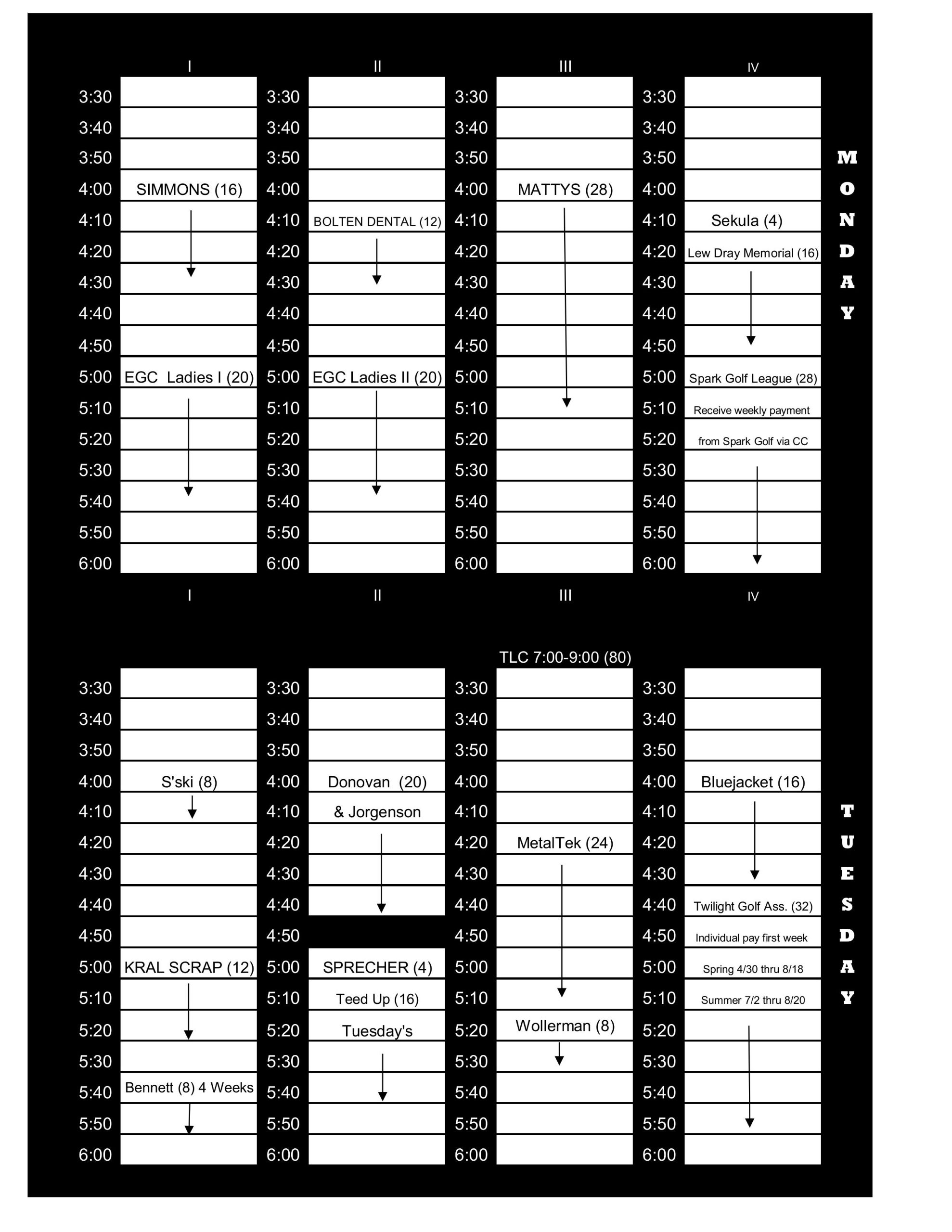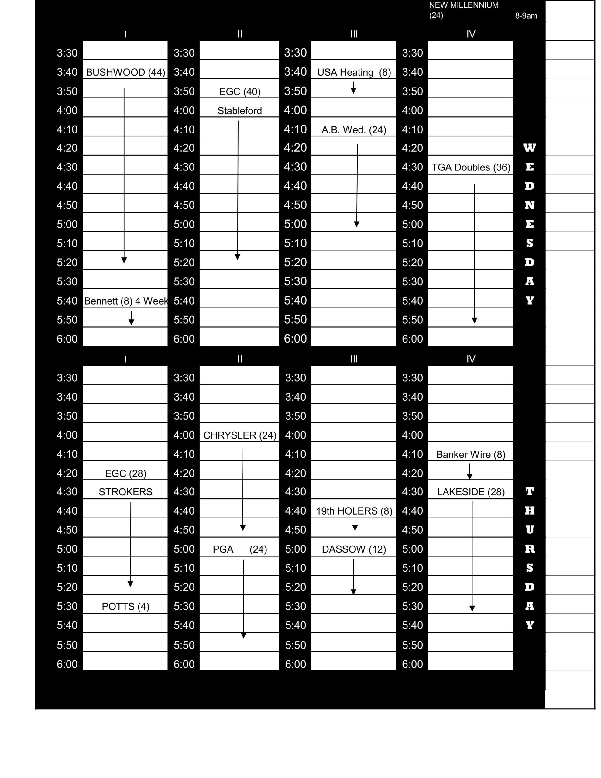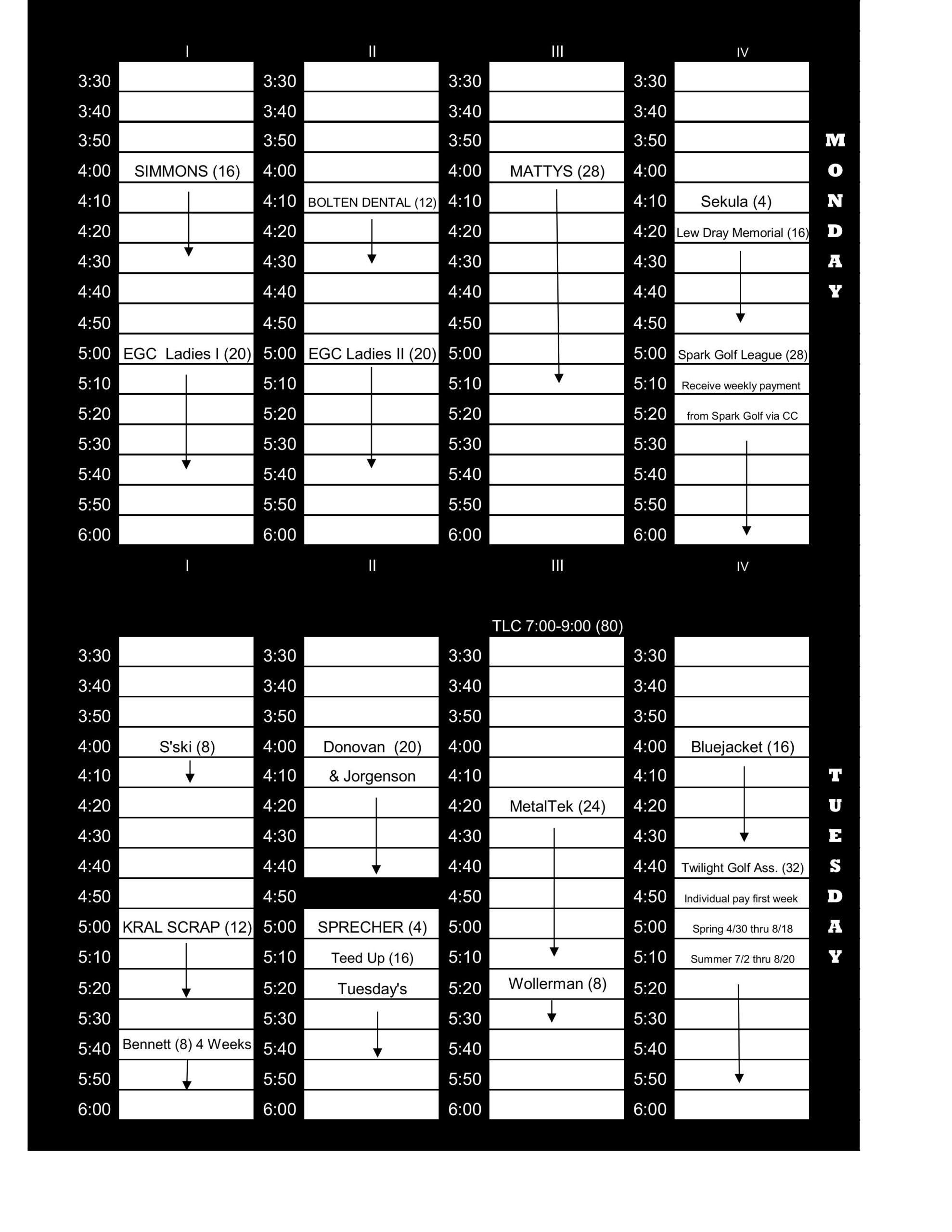 - League reservations will be made in groups of even foursomes. Such as 12, 16, 20, 24, 28, etc.