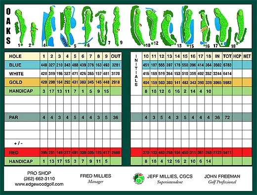 The Oaks at Edgewood Golf Course is certainly the more challenging of our two Wisconsin golf courses. With the right combination of rolling hills, wooded areas, lakes, and the winding Fox River the Oaks Course will test your skills every time you play.